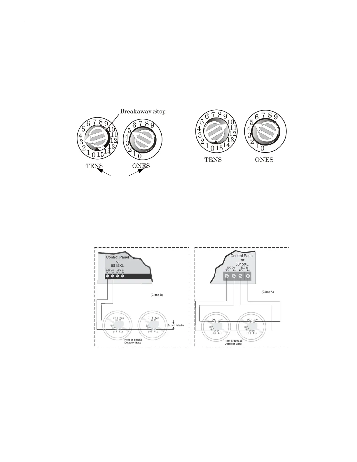 Example 2: To select device address 105, turn the ONES rotary dial to 5 and the TENS rotary dial to 10 as show in “IDP or SK SLC