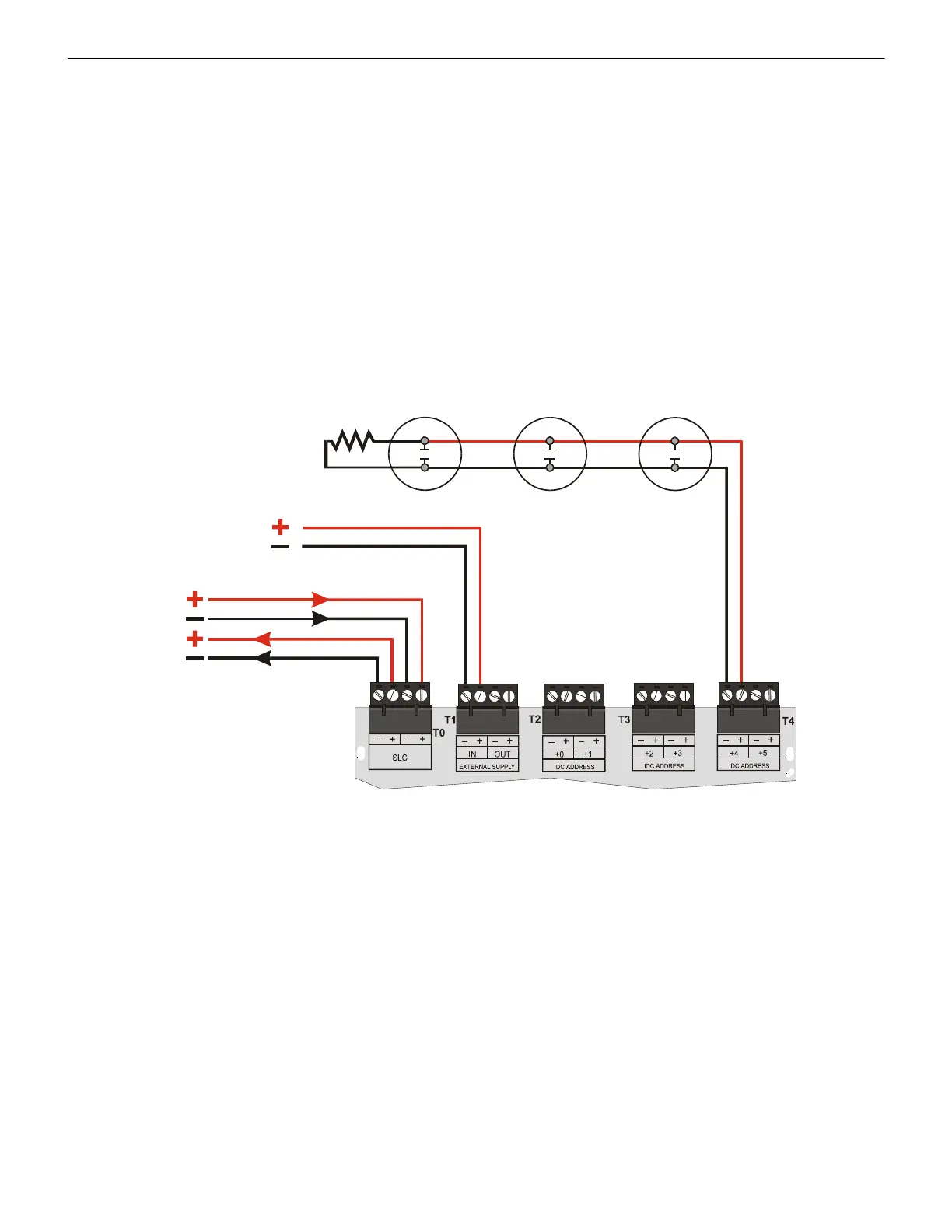 Connect the SLC wiring to the module terminals T0 as shown below.