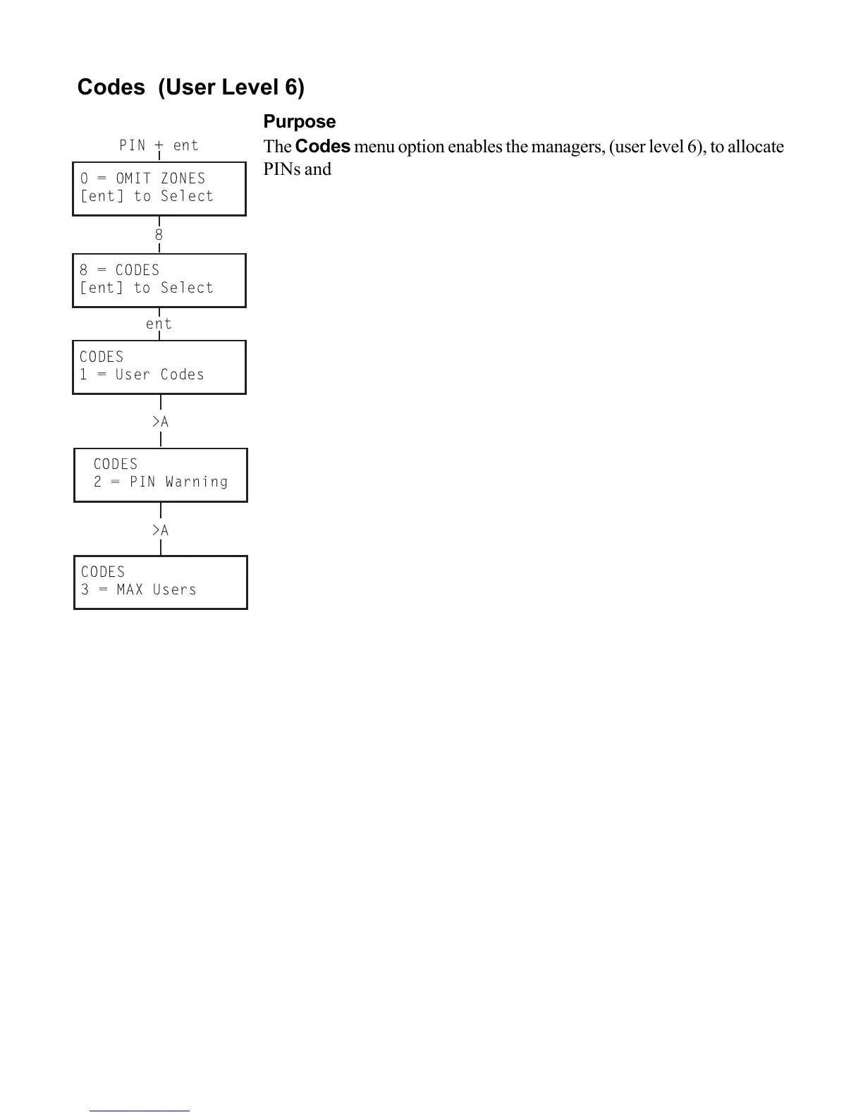 The Codes menu option enables the managers, (user level 6), to allocate
