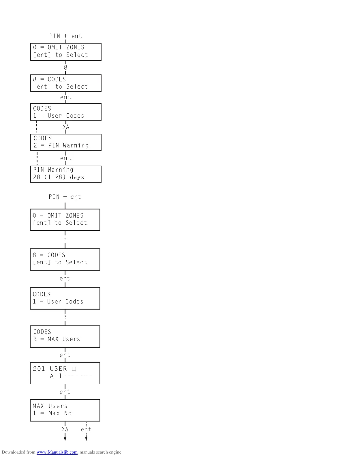 Enter the Codes option and select 3 = MAX Users. Press the ent key to