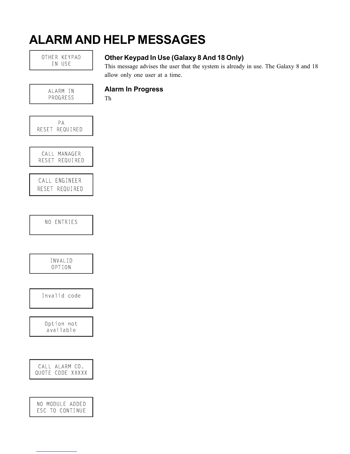 The system is currently in alarm condition and must be cancelled by a valid PIN or