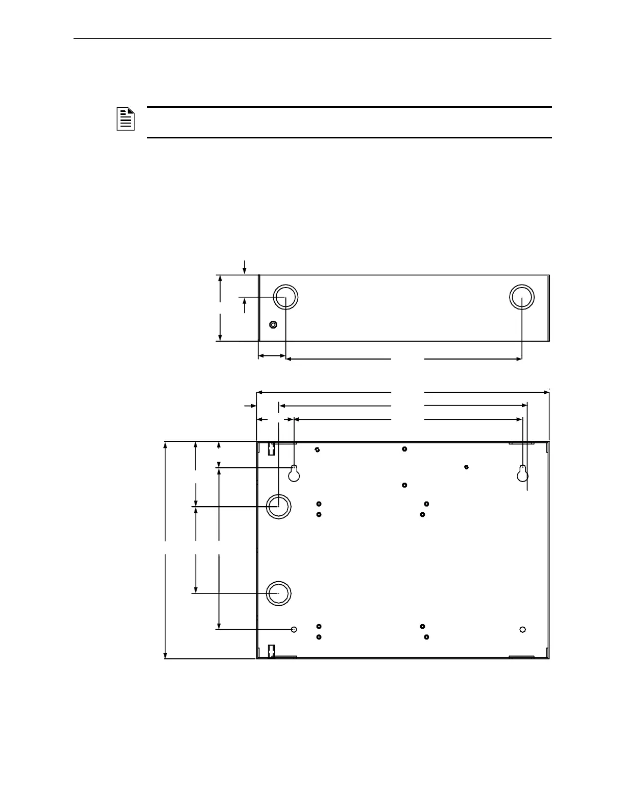 2. To mount the backbox, secure with two (2), #10 screws in the two-hole mounting pattern as