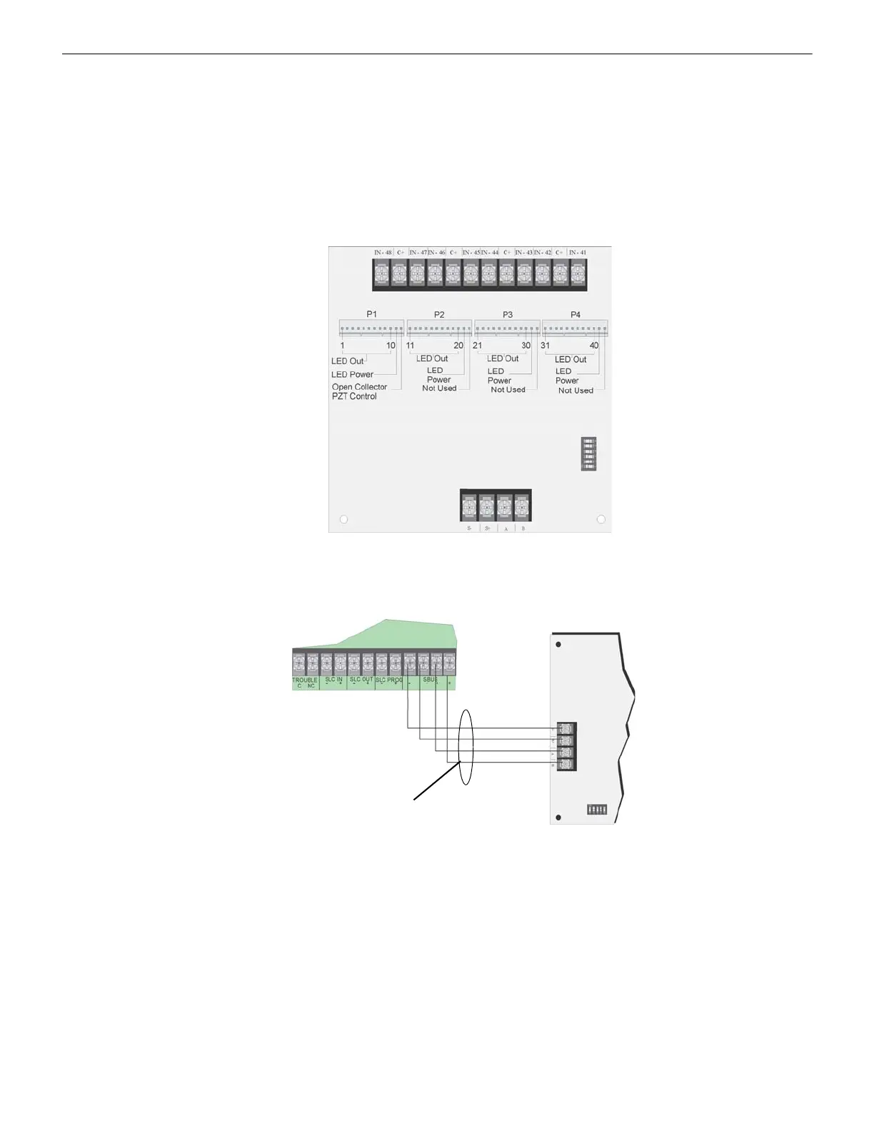 plan annunciator boards. The 5880 can drive up to 40 LEDs and has one PZT controller. The 5880 also has eight inputs for dry contact