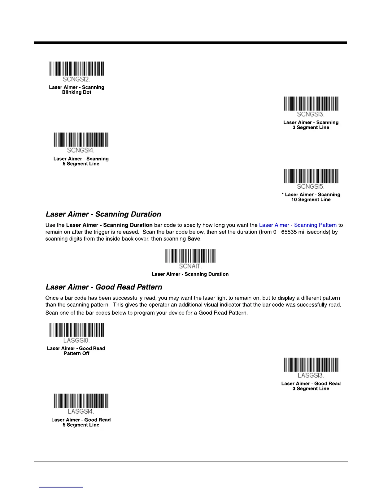 Honeywell Granit 1280i - Laser Aimer - Scanning Duration; Laser Aimer - Good Read Pattern