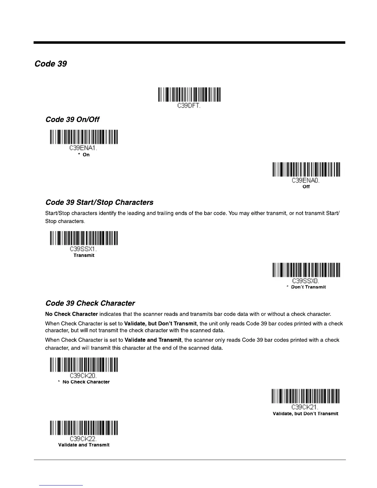 Honeywell Granit 1280i - Code 39 On;Off; Code 39 Start;Stop Characters; Code 39 Check Character