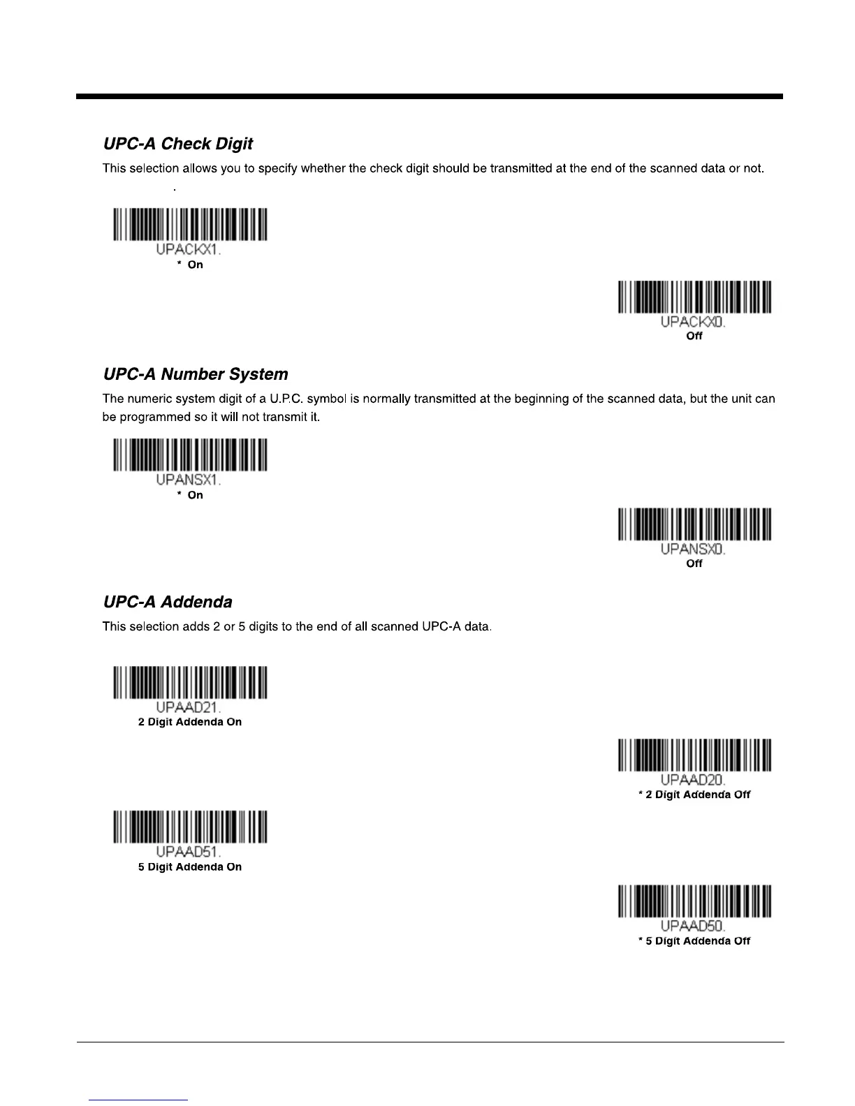 Honeywell Granit 1280i - UPC-A Check Digit; UPC-A Number System; UPC-A Addenda