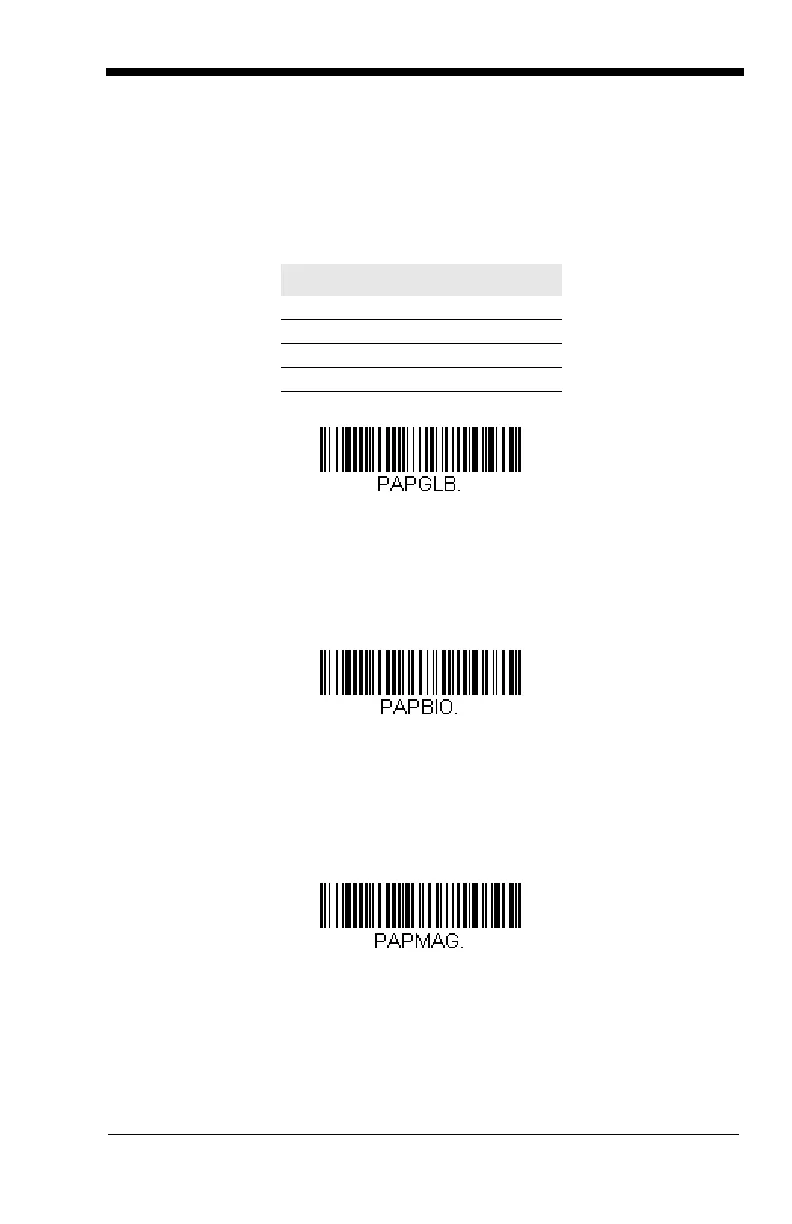 bioptic scanner auxiliary port configuration. This bar code sets the baud rate to