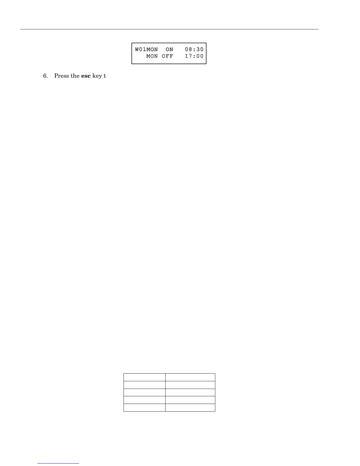 6. Press the esc key three times to escape from the Timers option.