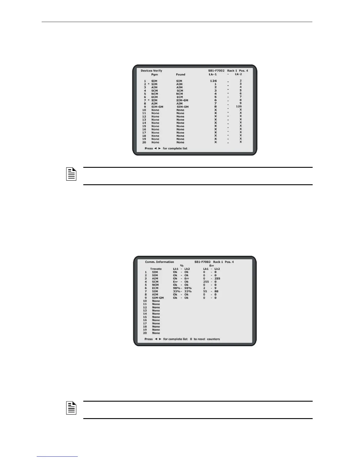 “Comm. Information” diagnostic menu of the control board. For each of the two links of every