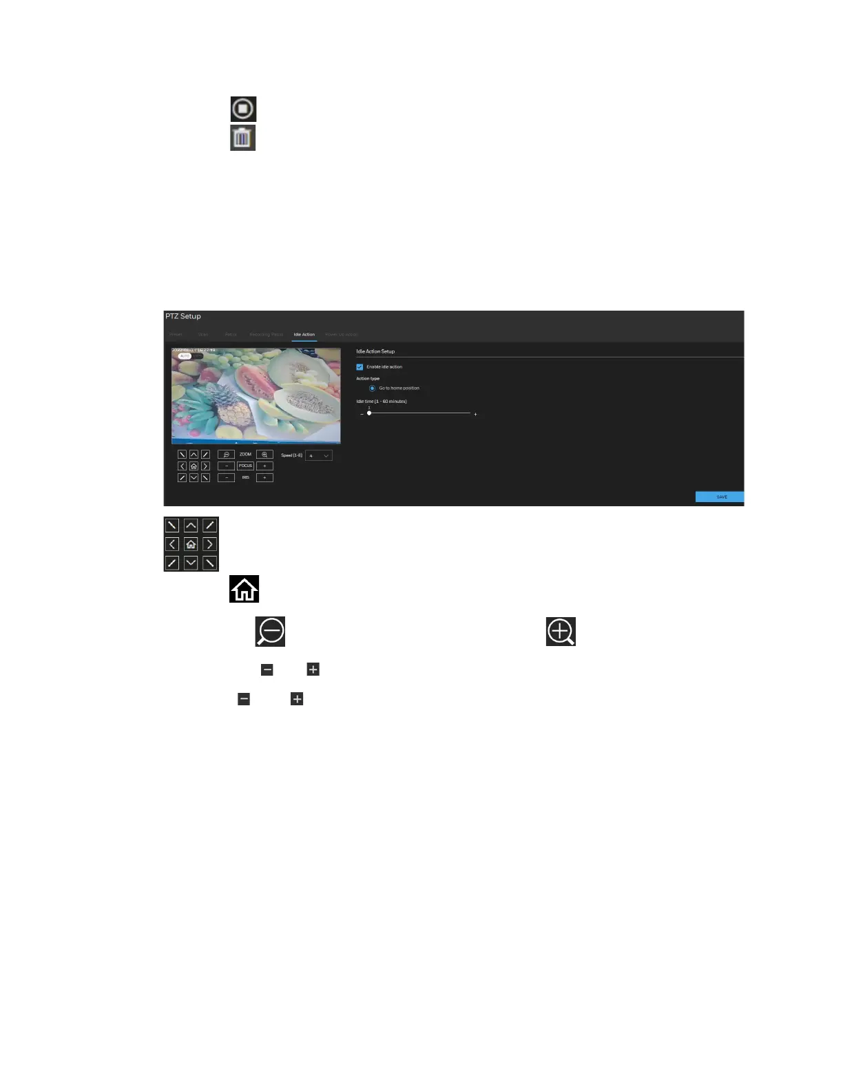 Go to Setup PTZ Setup Idle Action.