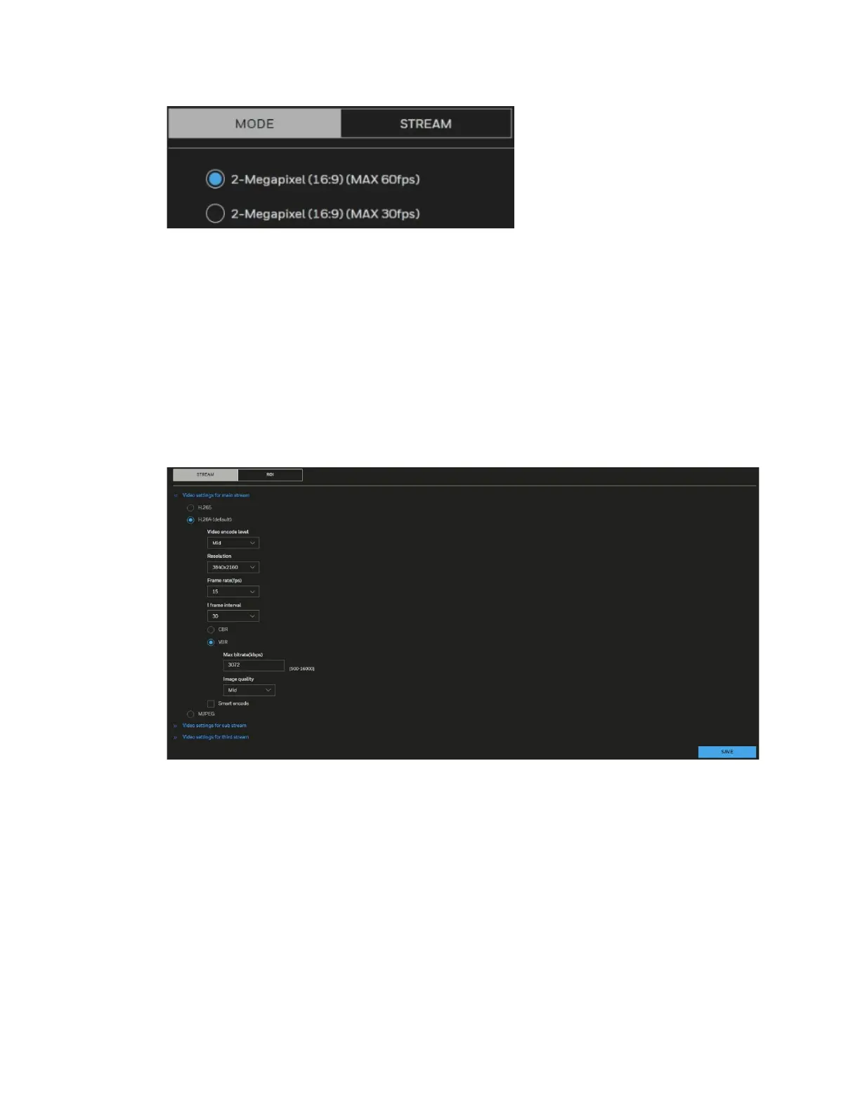 Select H.265, H.264(Default), or MJPEG, and apply the video settings for main stream,