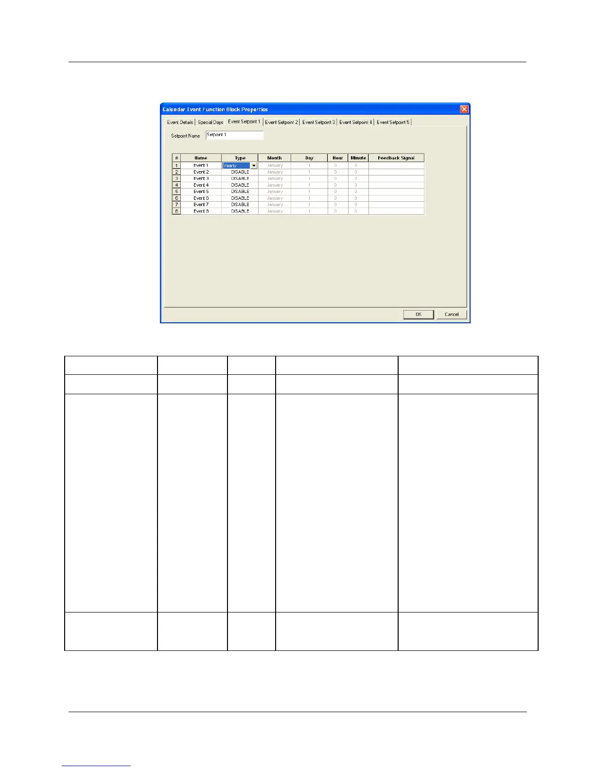 Table 28  Calendar Event Setpoint tab configuration parameters