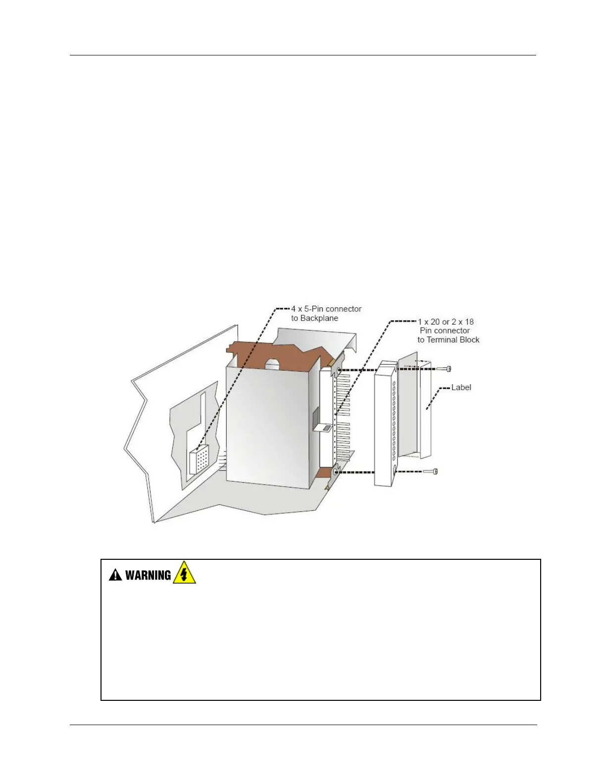 block.  When the I/O module is inserted into the rack and the terminal block is placed on the circuit board,