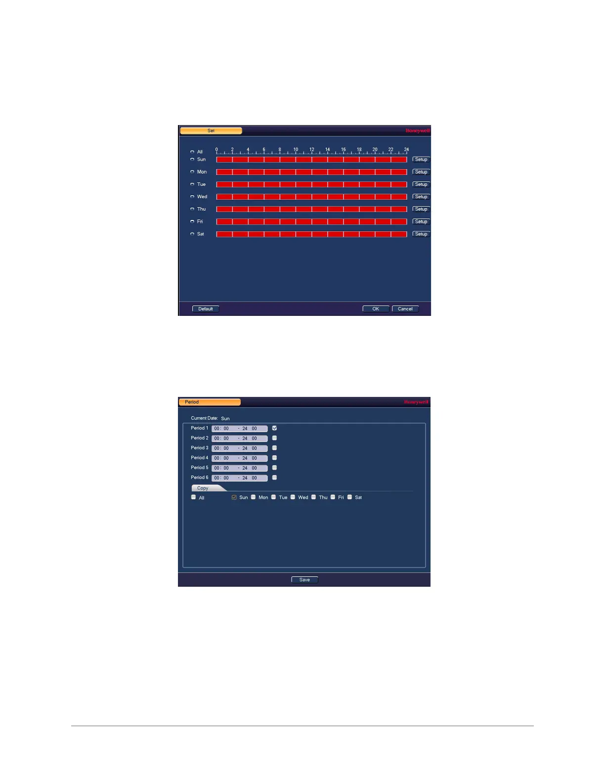 2. By default, when alarm detection is enabled, it is active all the time. To modify the periods