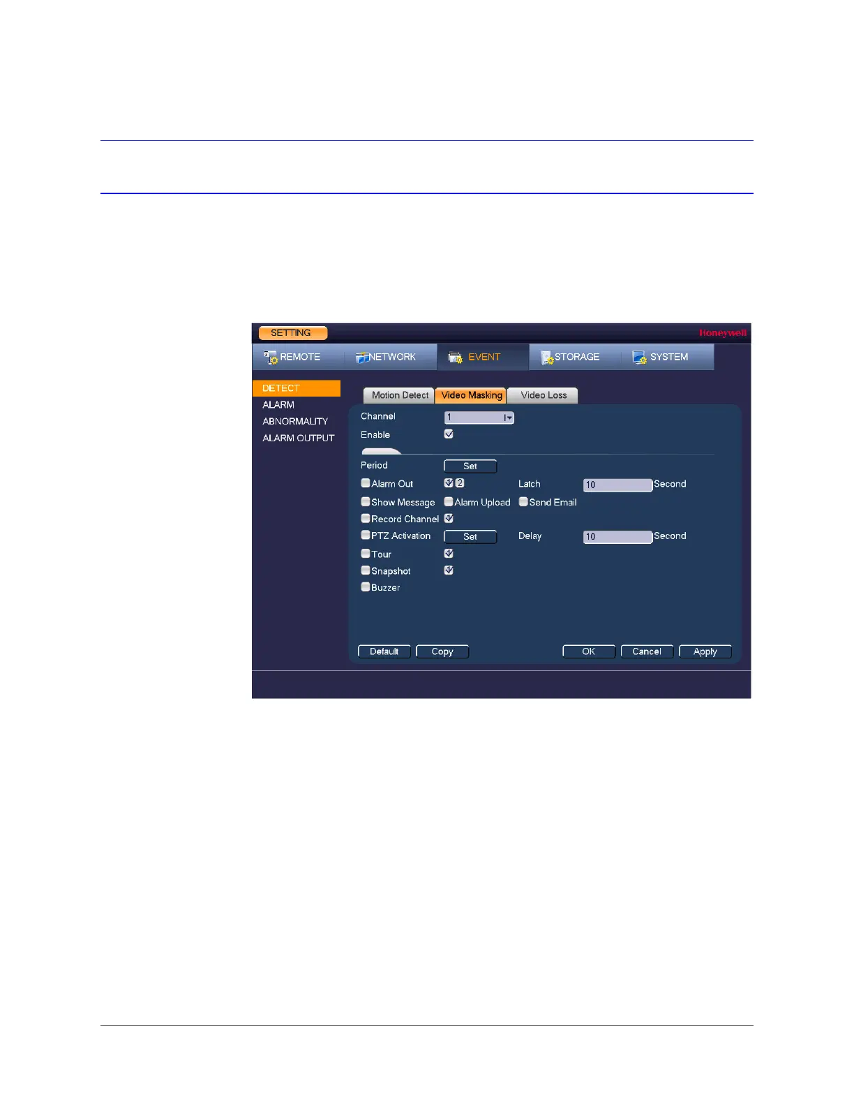 1. Go to Main Menu > SETTING > EVENT > DETECT > Video Masking.