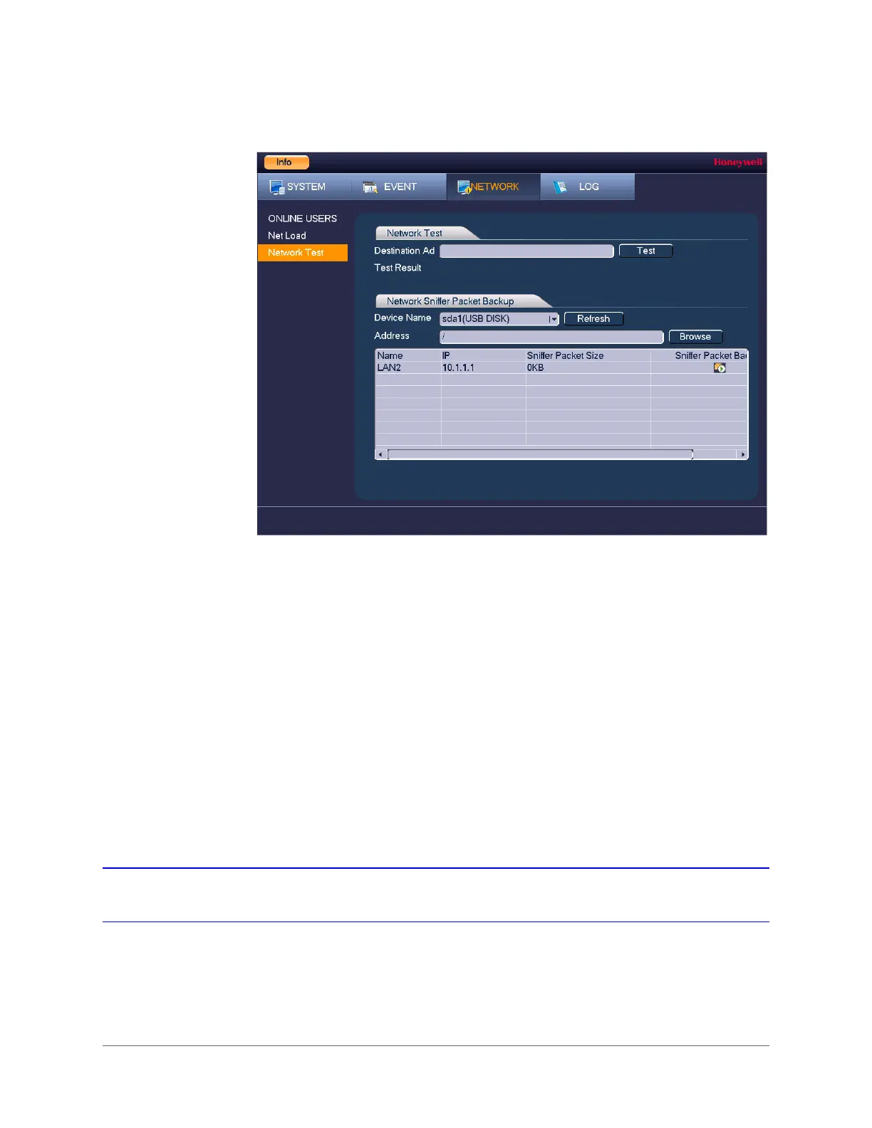 2. On the Test page, under Network Sniffer Packet Backup, click Refresh. The connected