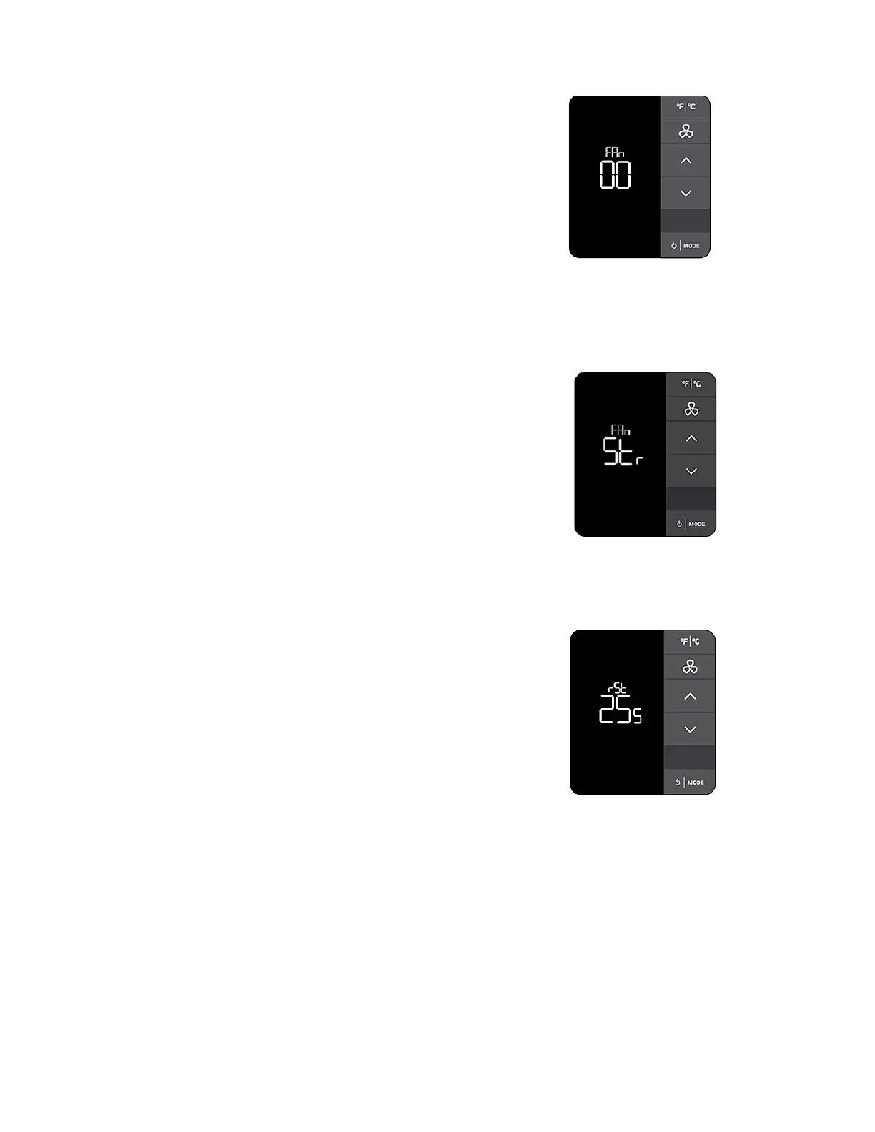 Once FAN is displayed, press MODE. Then use the UP/DOWN arrow