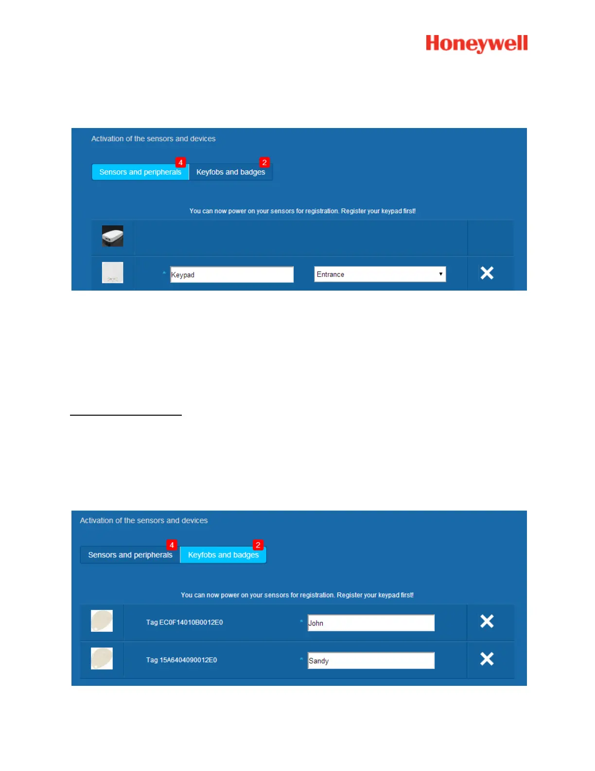 Nell'esempio in figura sono stati registrati i badge di "John" e "Sandy".