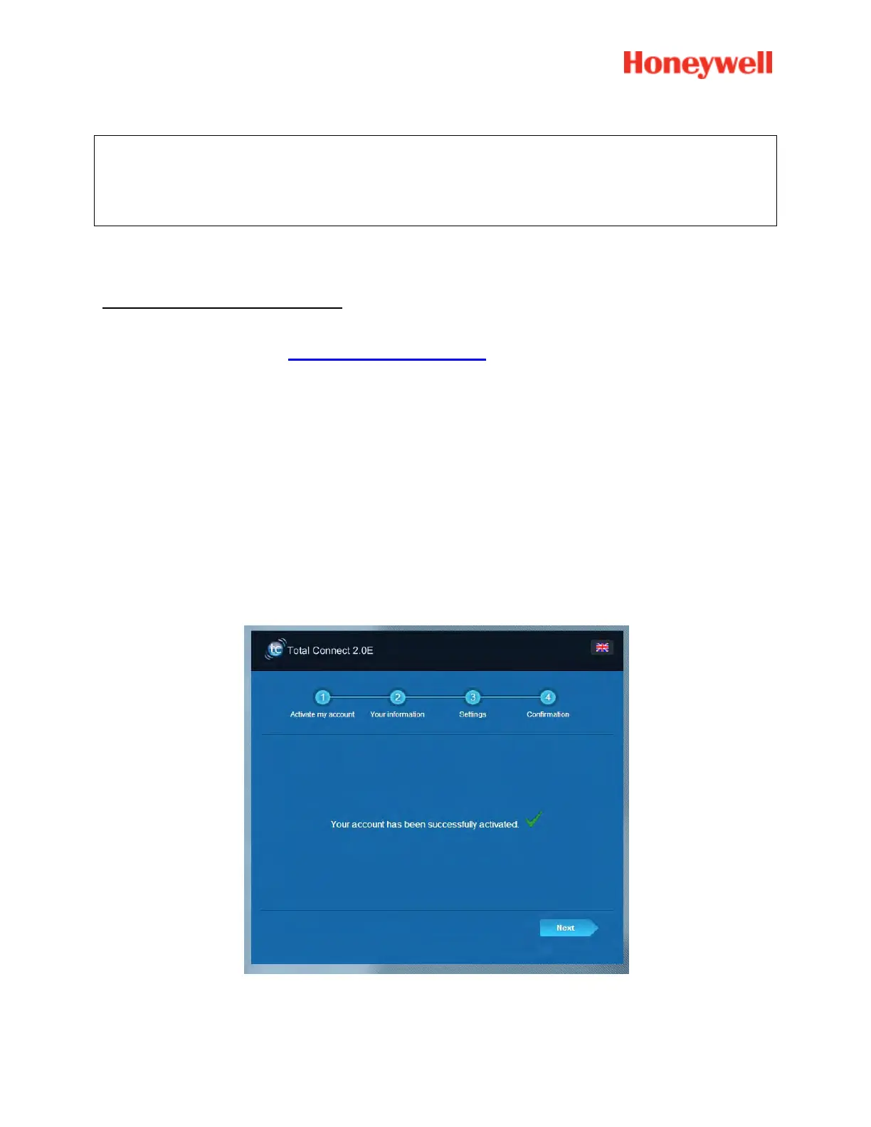 Følgende melding vises: "Your account has been sucessfully activated." Klikk på den blå knappen