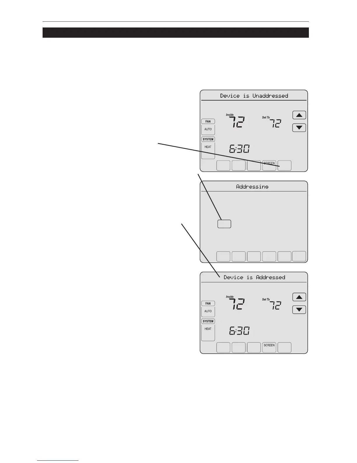 an unaddressed thermostat will show “Device Is