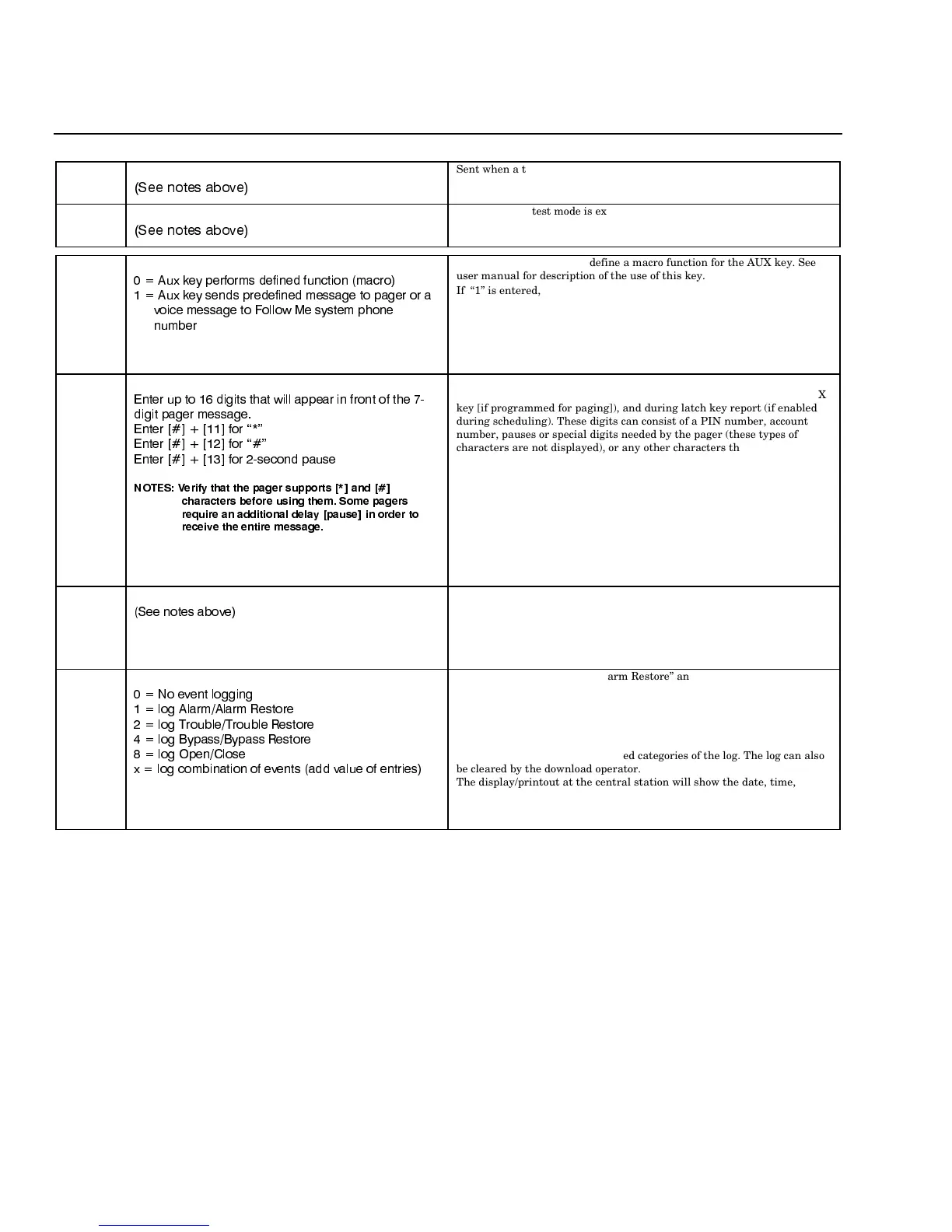 key [if programmed for paging]), and during latch key report (if enabled