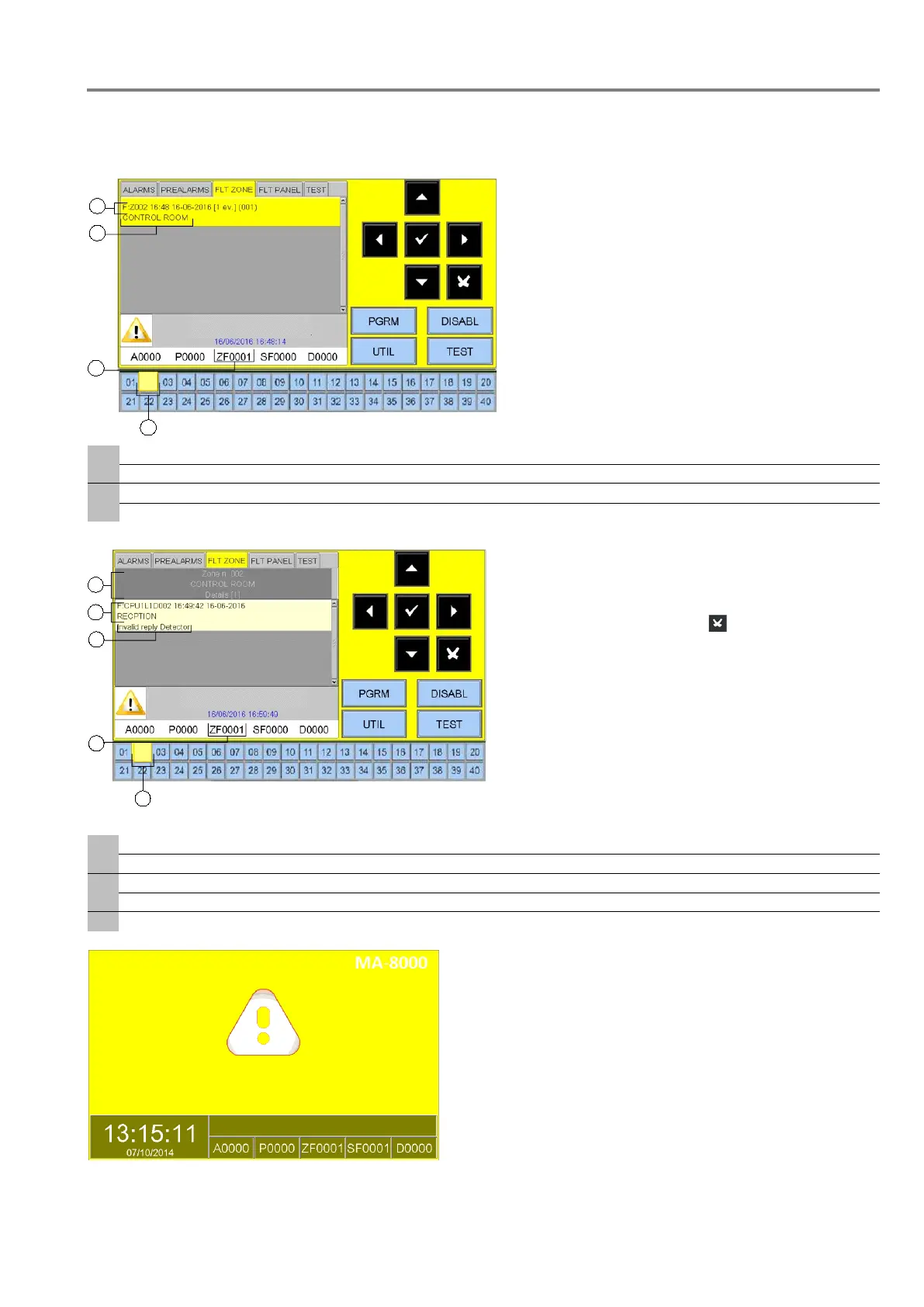 The following display appears when the control panel is in zone fault condition. Fault events are also initially