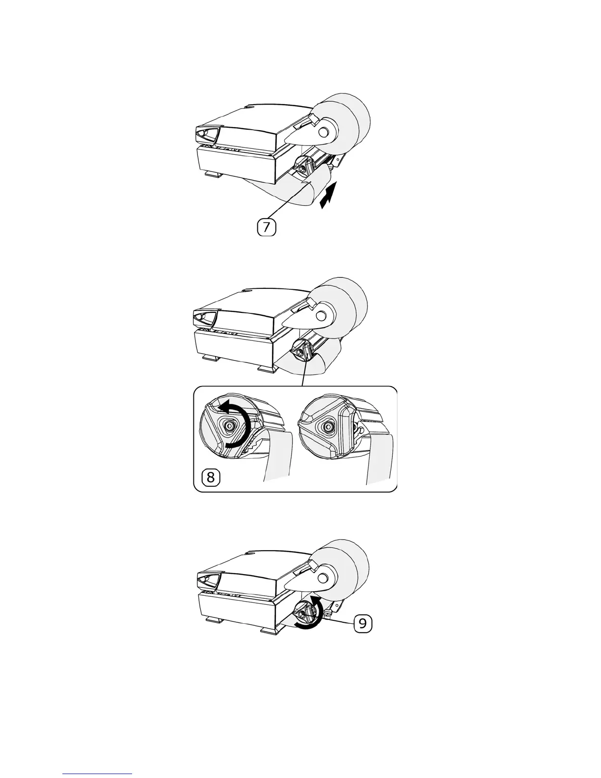 clockwise. This increases the tension of the backing paper.