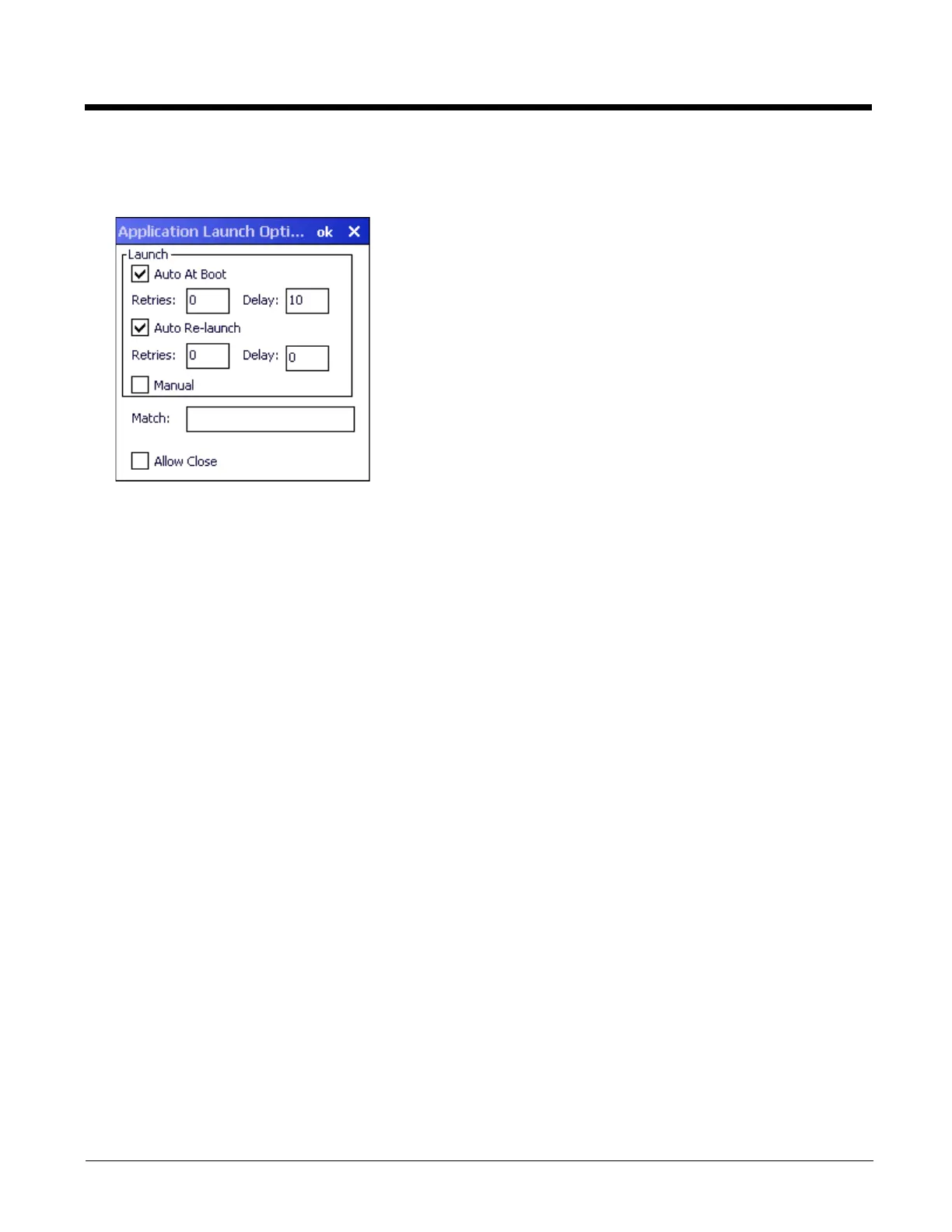 When enabled, automatically launches (subject to the specified Delay in seconds) the application after the unit is