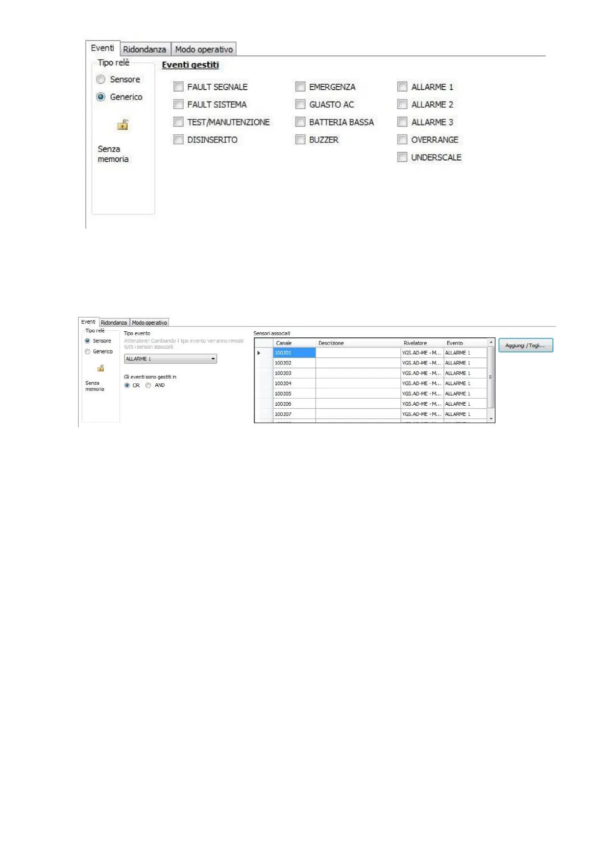 Fig. 4.5.4 h) Generic events selection window (system events)