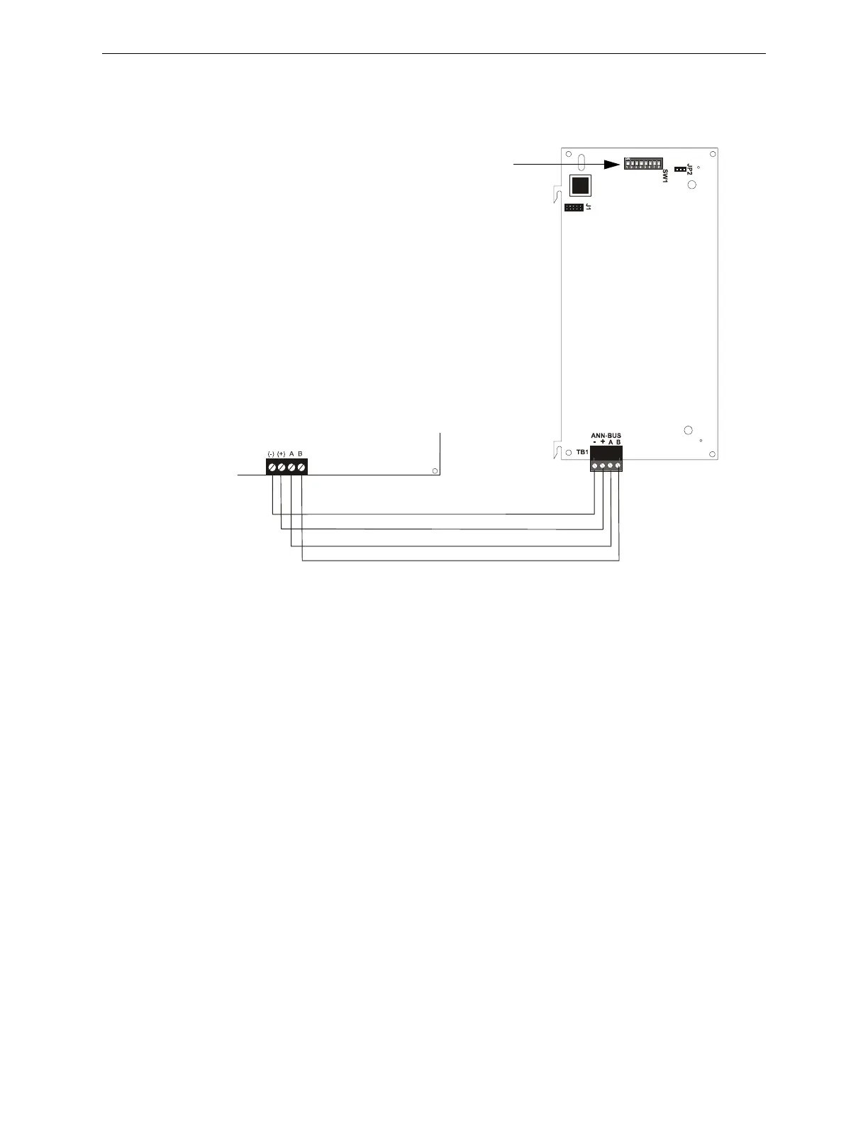 to the FACP and the DIP switches for selecting the ANN-BUS ID number.