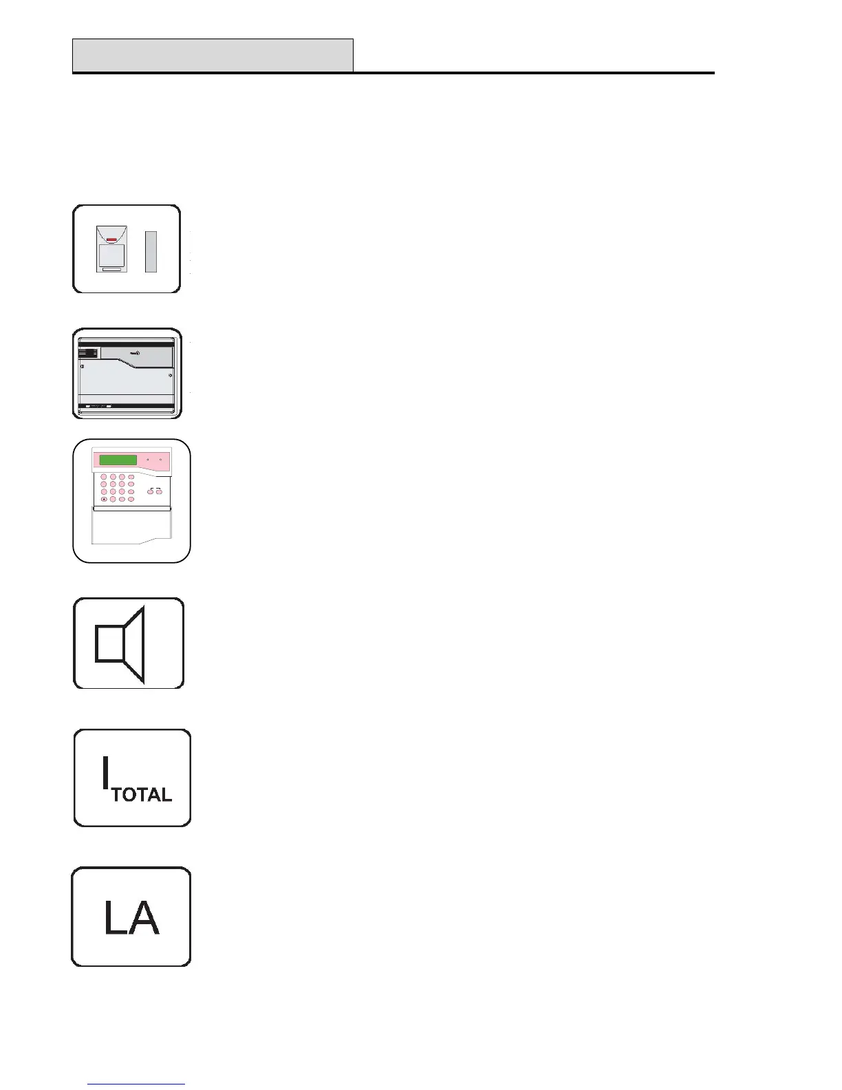 keypads, external siren with strobe light (also called a bell box) and detectors to