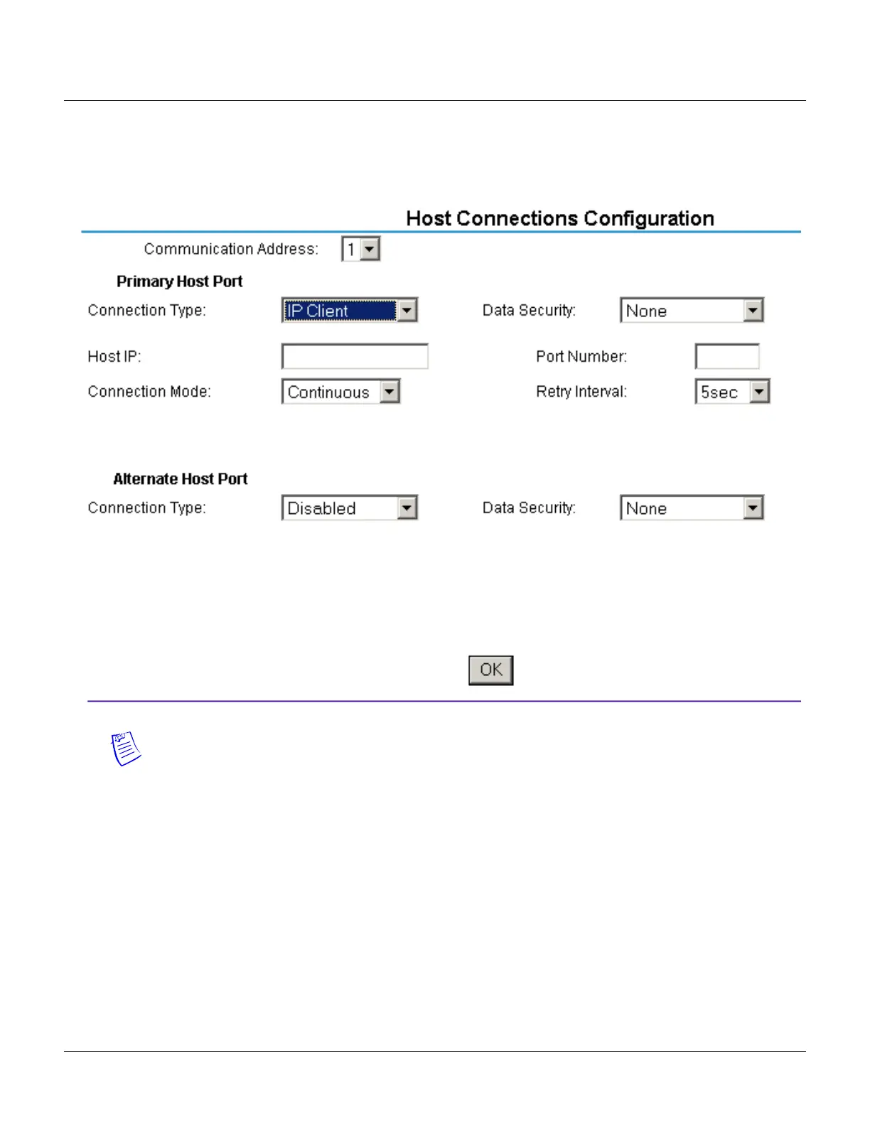 Figure 9: PRO3200 Host Port Configuration Screen with IP Client Connection