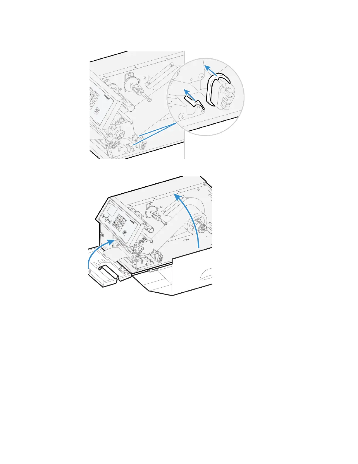 16. Adjust the position of the green edge guides so that the media is guided with a