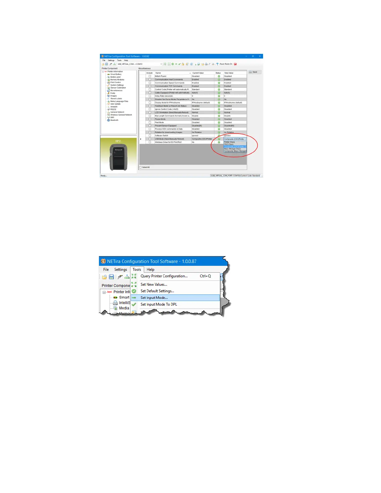 Note: The NETira CT Configuration Utility can only communicate with the printer using the