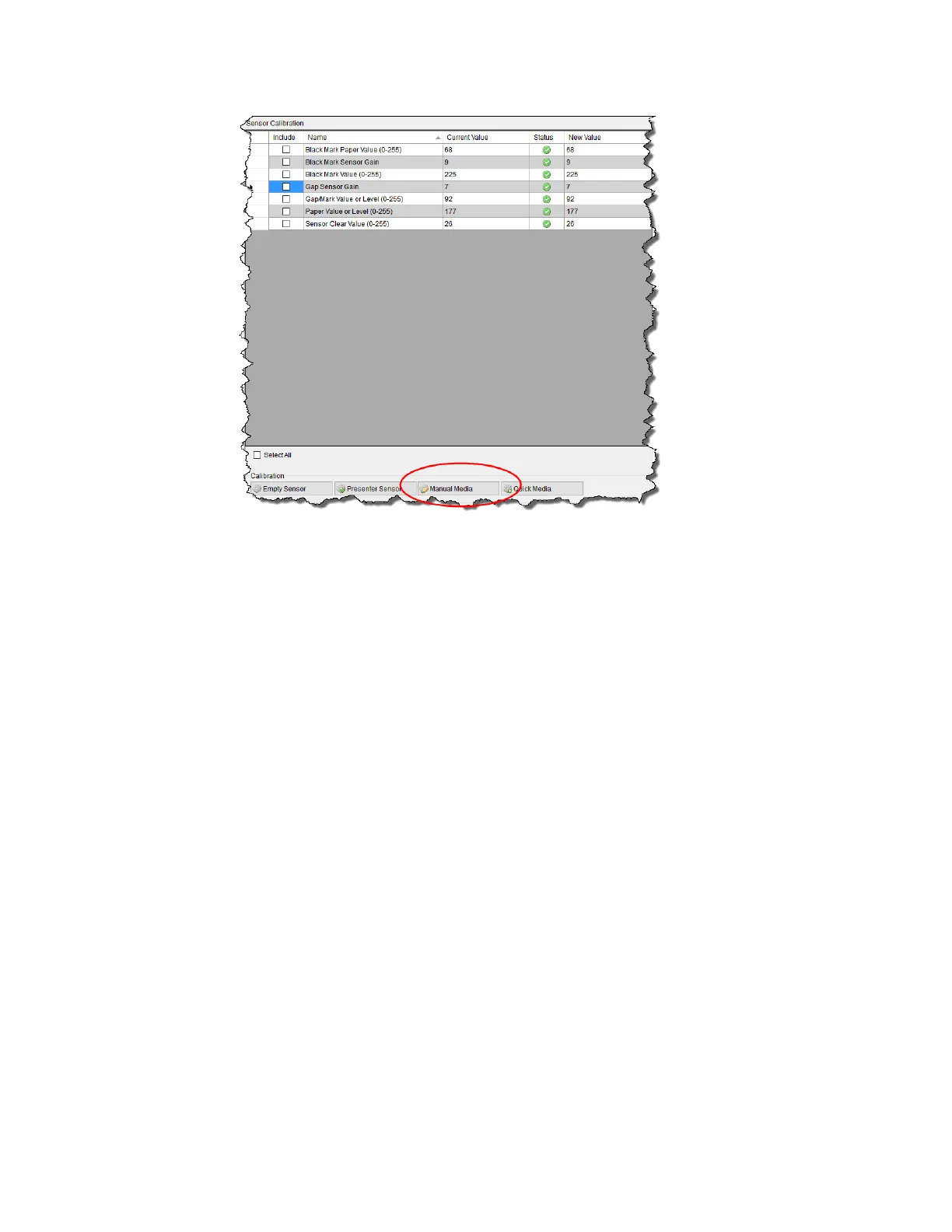 Note: A special media with black marks is necessary to perform this calibration.