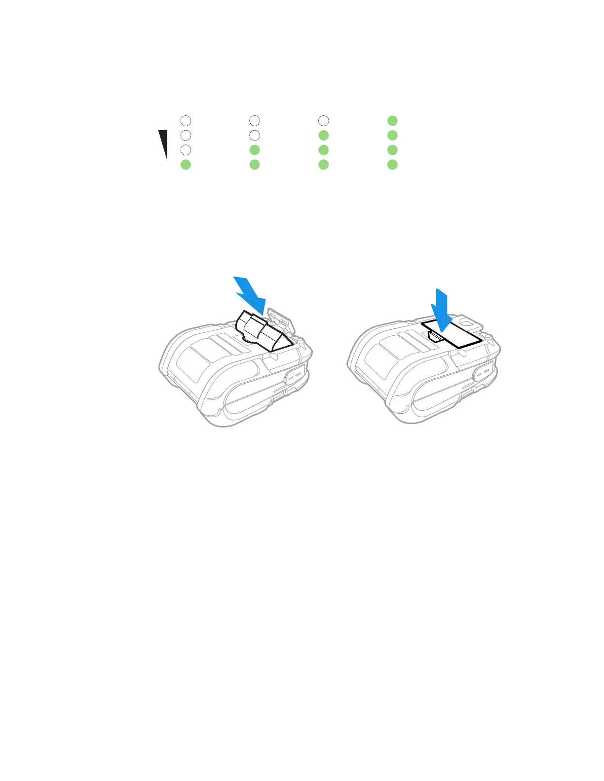 Note: The printer can run for 20 - 120 seconds without a battery and not lose connectivity