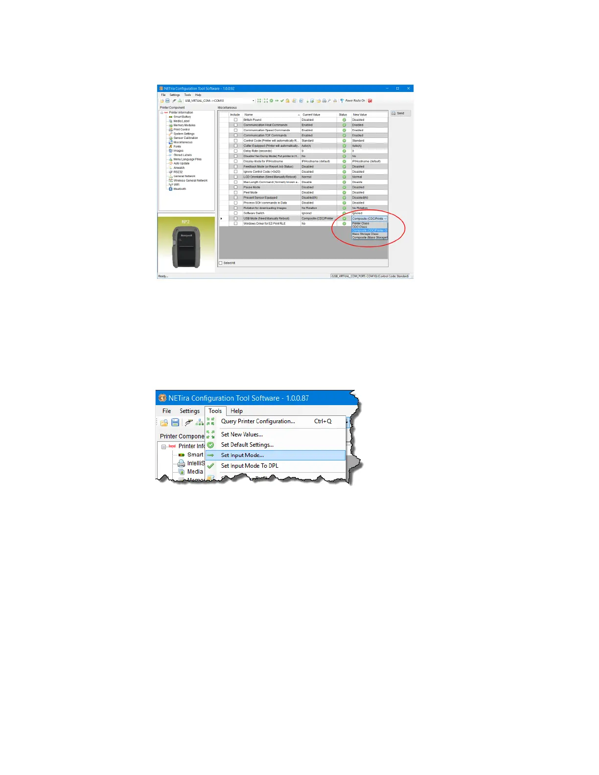 Note: The NETira CT Configuration Utility can only communicate with the printer using the