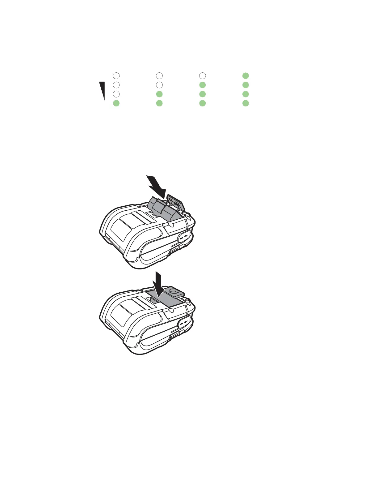 Note: The printer can run for 20 - 120 seconds without a battery and not lose connectivity