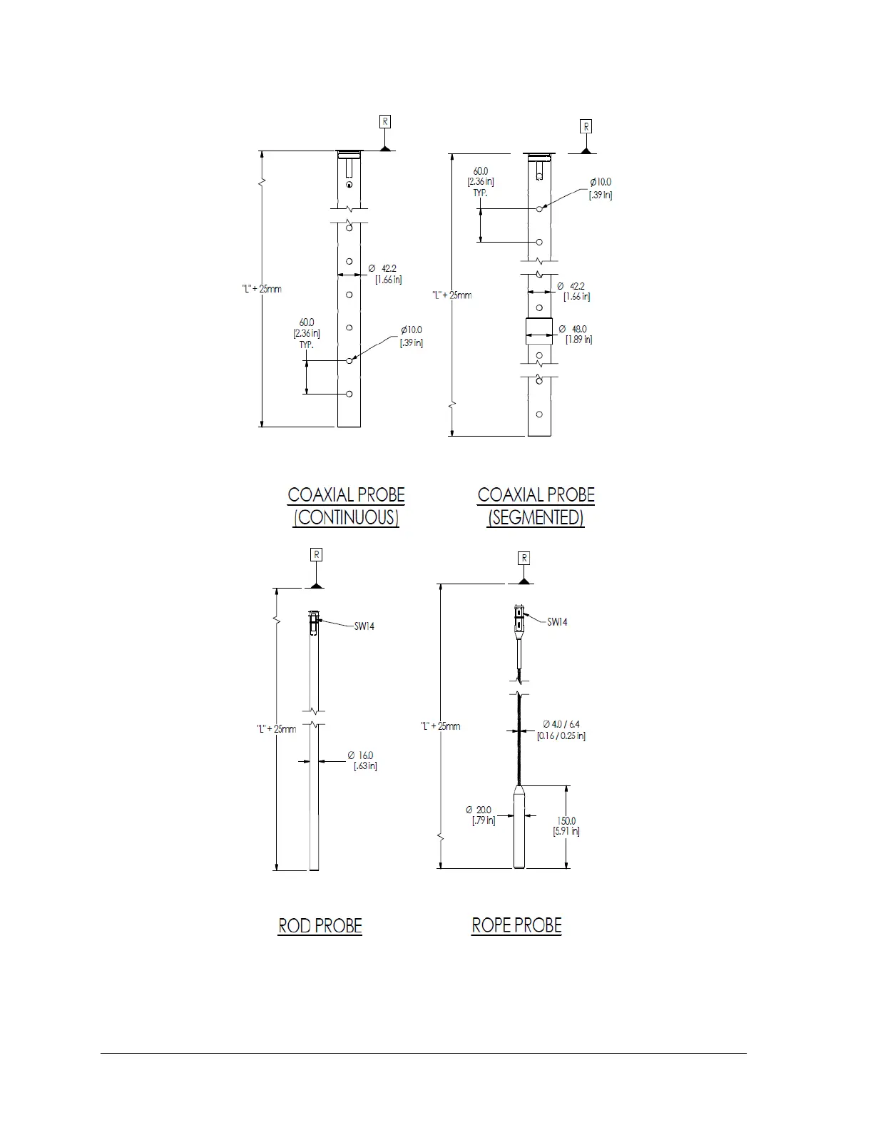 Honeywell SmartLine SLG 700 - Figure 3-3: SLG726 Threaded Process Connection Probe Dimensions; MM [In]