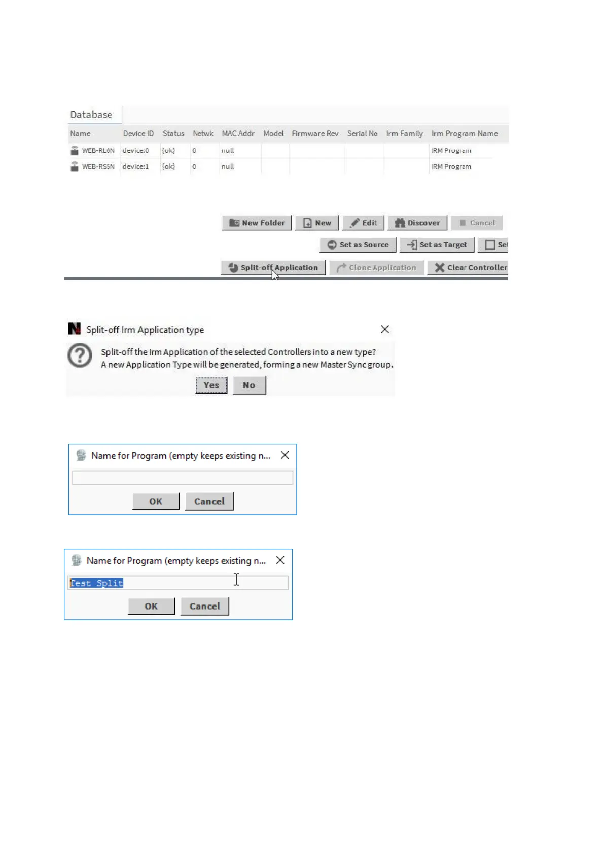 1. In the Database pane, select the device you want to split-off, and then click Split-Off Application.