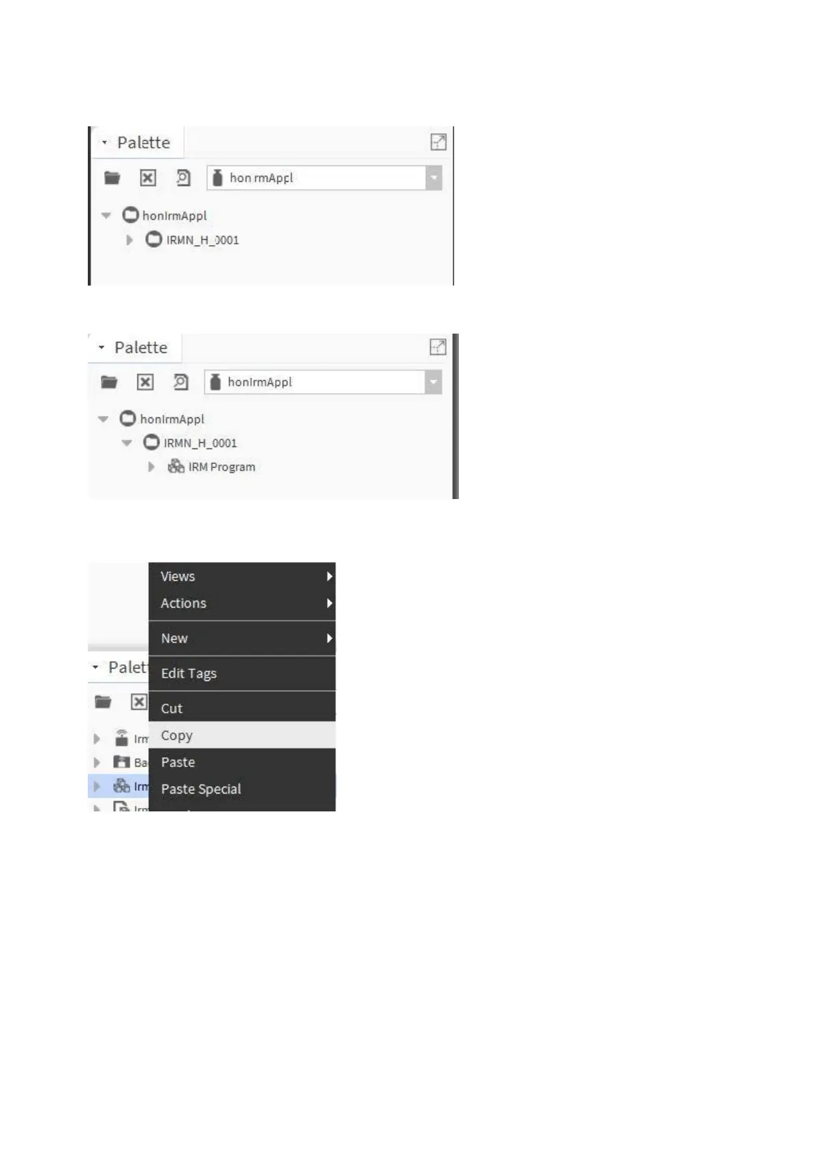 8. Right-click IRM Program and click Copy in the context menu.