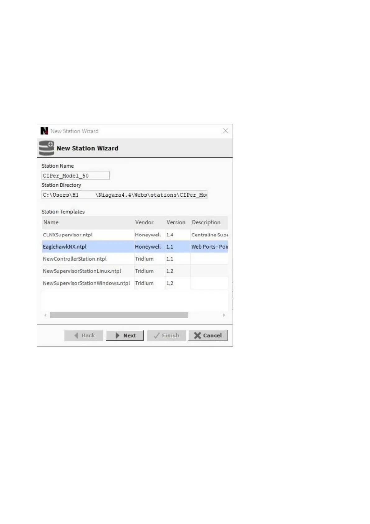 3. In the New Station Wizard dialog, select the ´EaglehawkNX.ntpl` template.