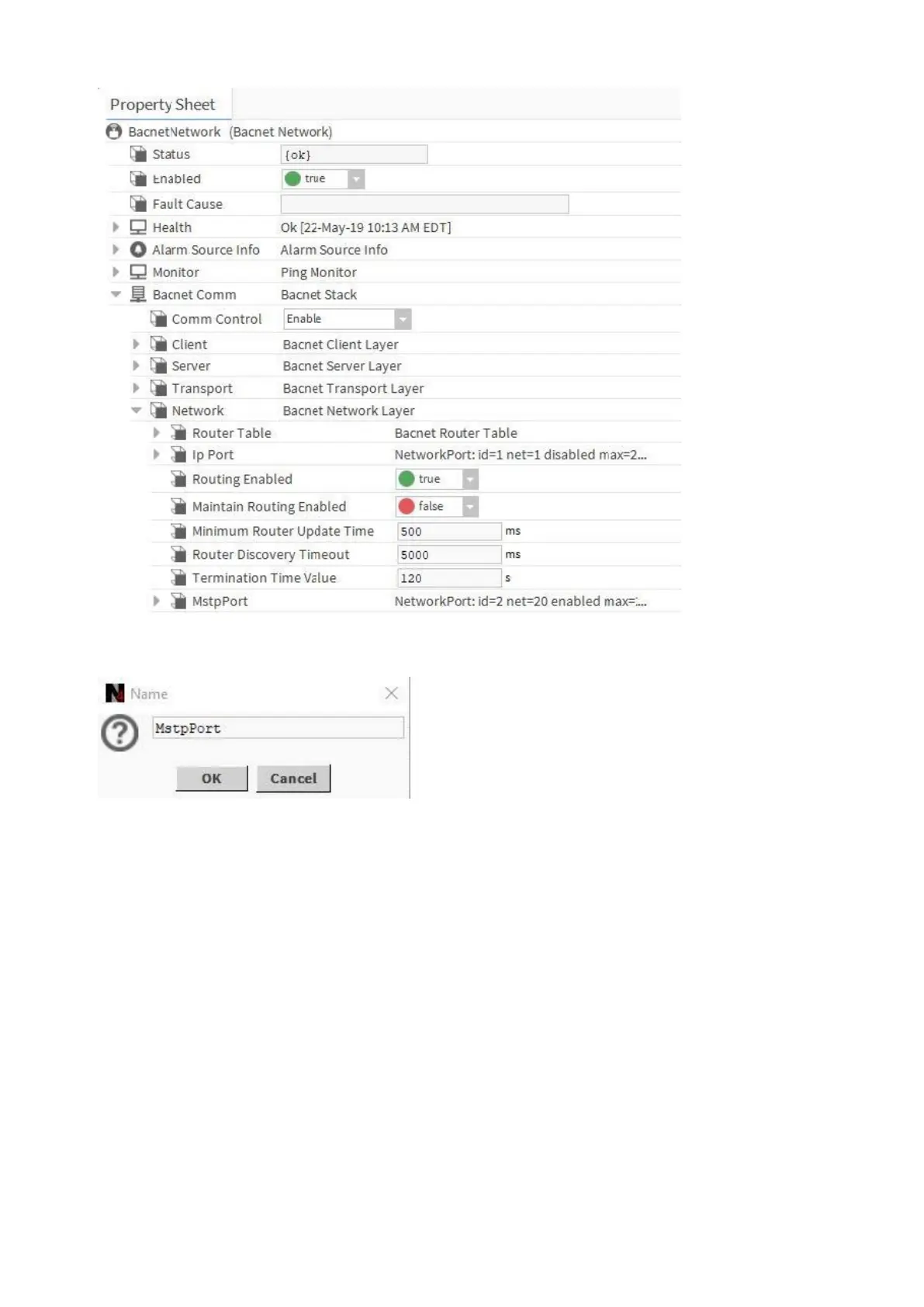 5. From the BACnet palette, add the MstpPort to Network.