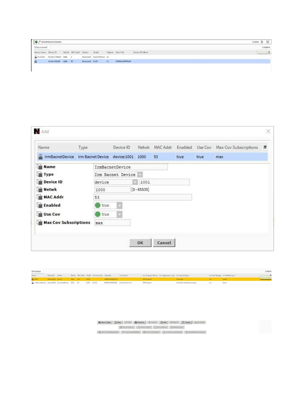 RESULT: All devices are added to the database. The devices are learned from the project to the controller as indicated