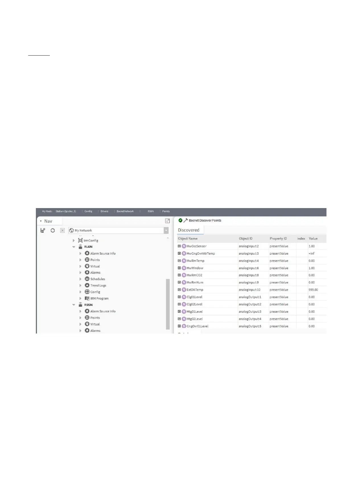 1. In the Nav tree, expand the BACnet network and browse to the Points folder of the WEB-RL6N master controller.