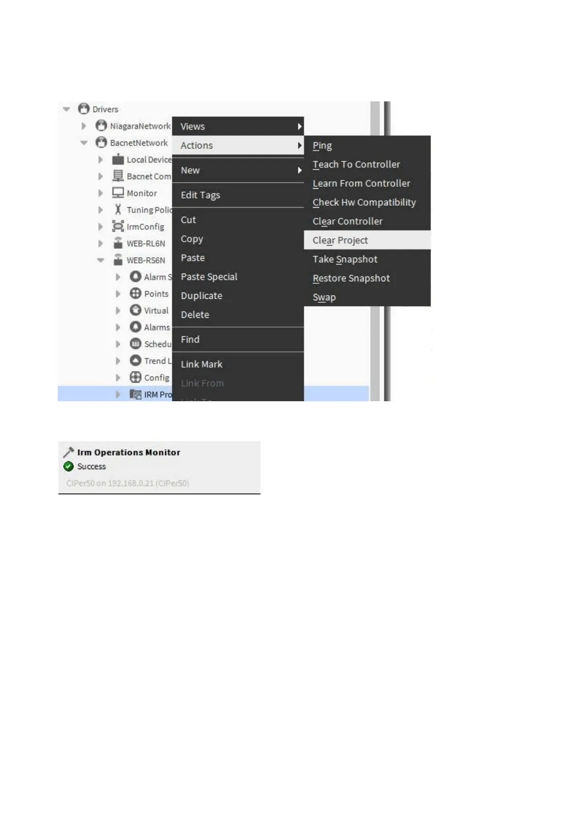 1. Right-click on IRM Program in the tree, then click Actions, and then click Clear Project in the context menu.