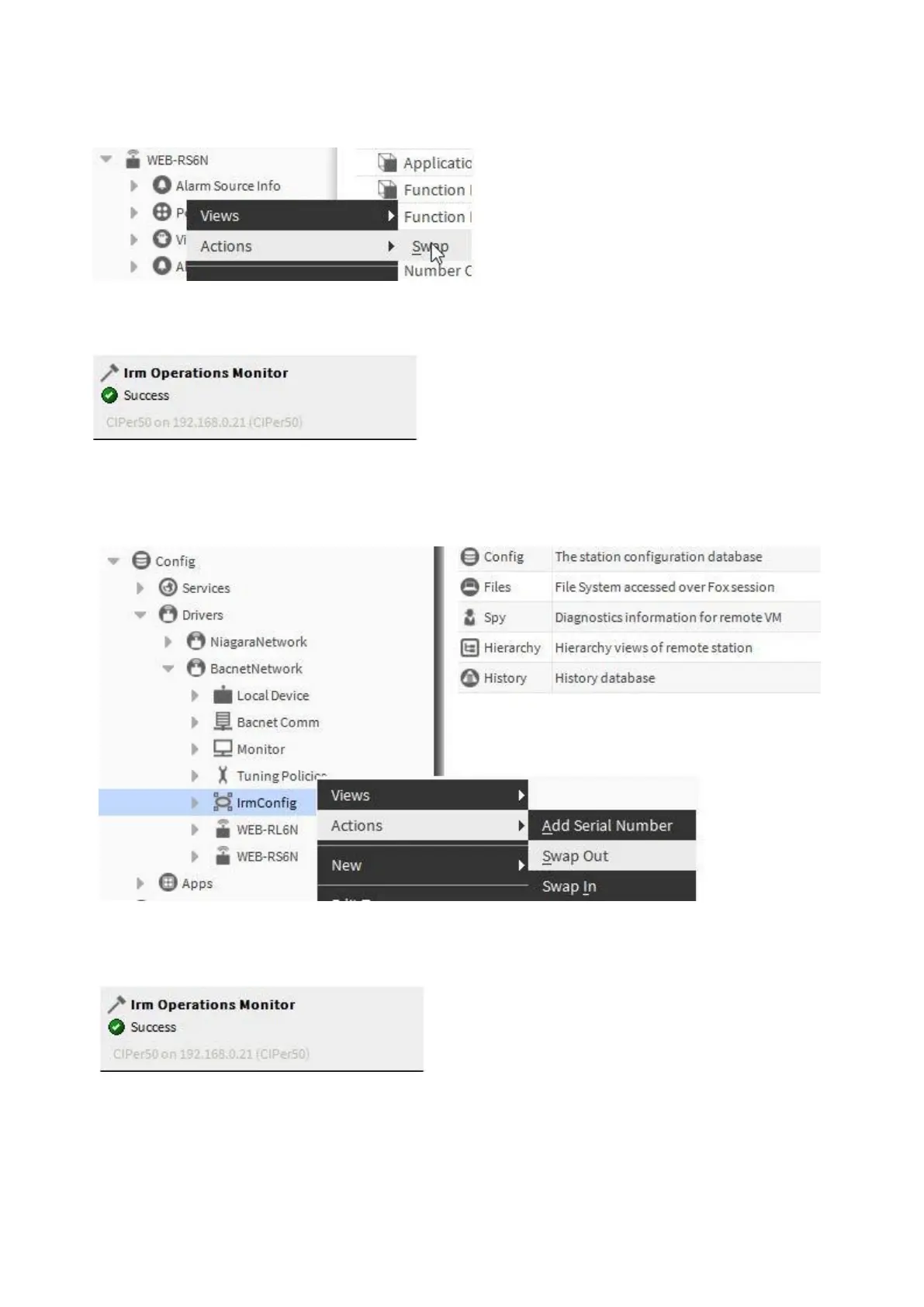 2. Right-click on the IRM Config folder in the tree, then click Actions, and then click Swap Out in the context menu.