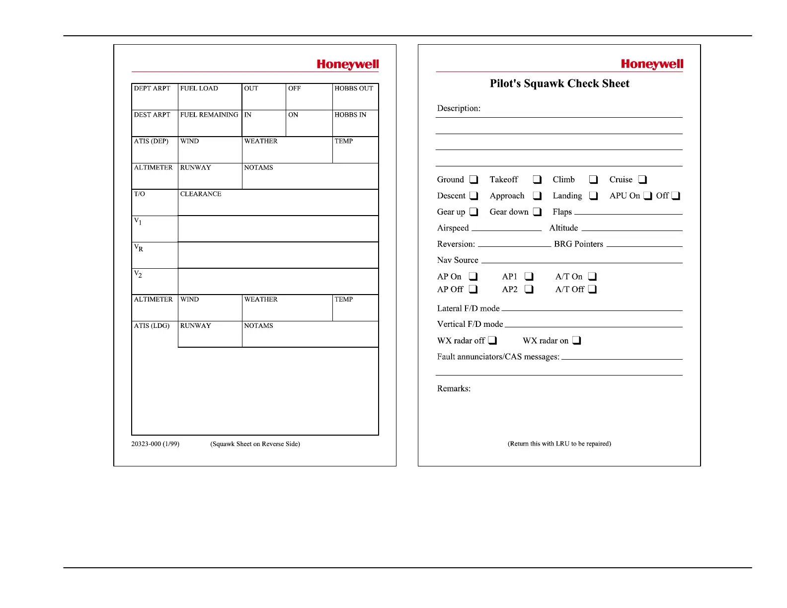 Honeywell SPZ-8000 - Pilots Flight Plan Form and Squawk Sheet