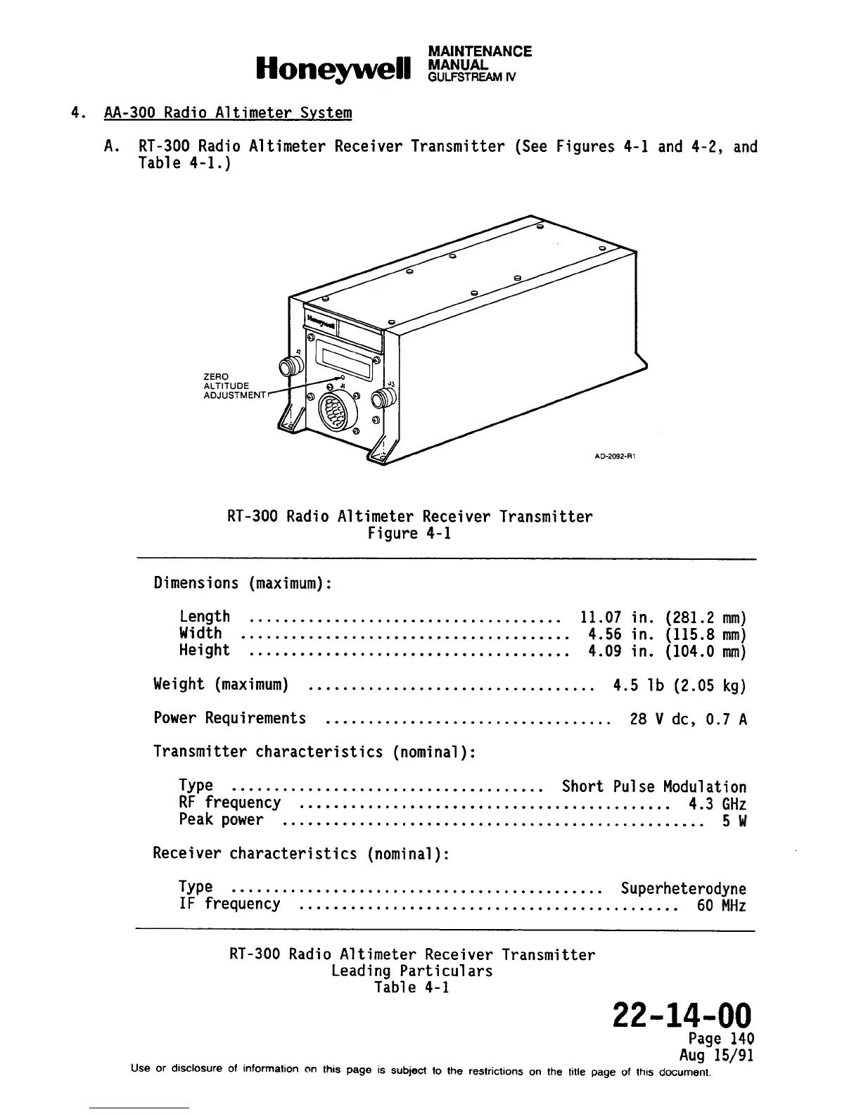 A. RT-300 Radio Altimeter Receiver Transmitter (See Figures 4-1 and 4-2, and