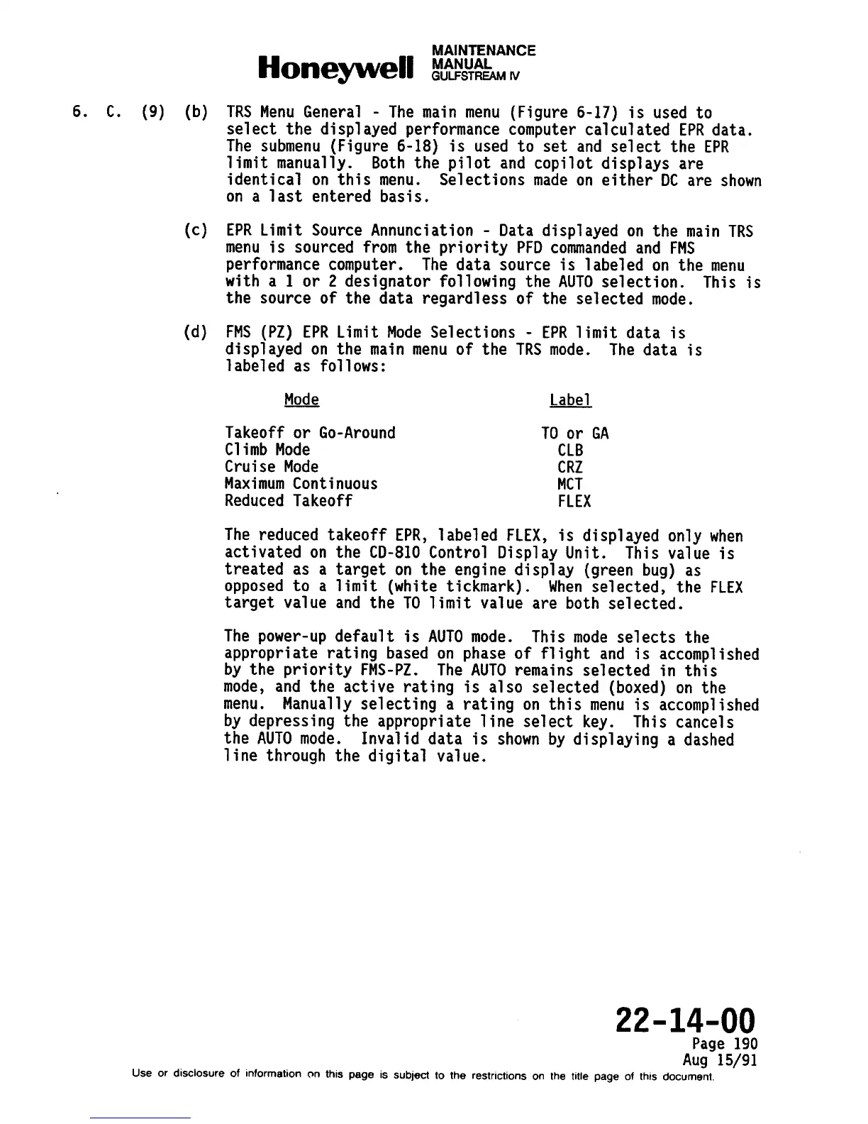 FMS (PZ) EPR Limit Mode Selections - EPR